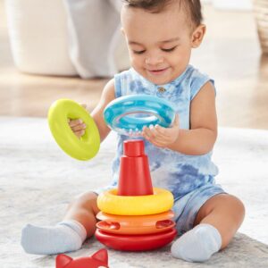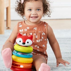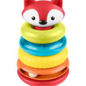 Stack, sort, rattle and roll with our ring stacking toy for baby. Topped with a cute Fox friend and a rocking base, baby will love to grab and stack the four colorful rings. A playful way to encourage fine motor skills, hand-eye coordination and more learn and grow fun.