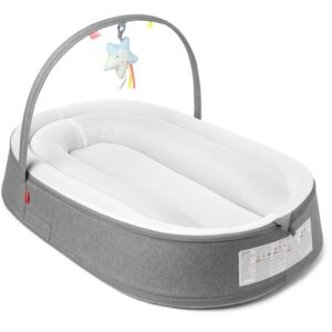 A comfy spot for baby to play and enjoy family time, our Playful Retreat Baby Nest adapts to your little one’s stage and age—from infants to babies up to 9 months. Designed for two stages of use, it features a breathable cushioned insert for your infant’s comfort in stage one. For stage two, simply unzip and remove the machine washable cushioned insert to accommodate older babies. A removable toy arch and a sweet shooting star soft toy engage baby as they lie on their back for supervised play. Great for travel and visiting grandma, just pack it in the included carrying case and go.