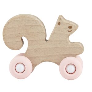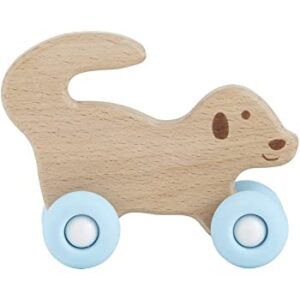 Natural Beechwood toy is carefully sanded for safe teething; printed facial features.