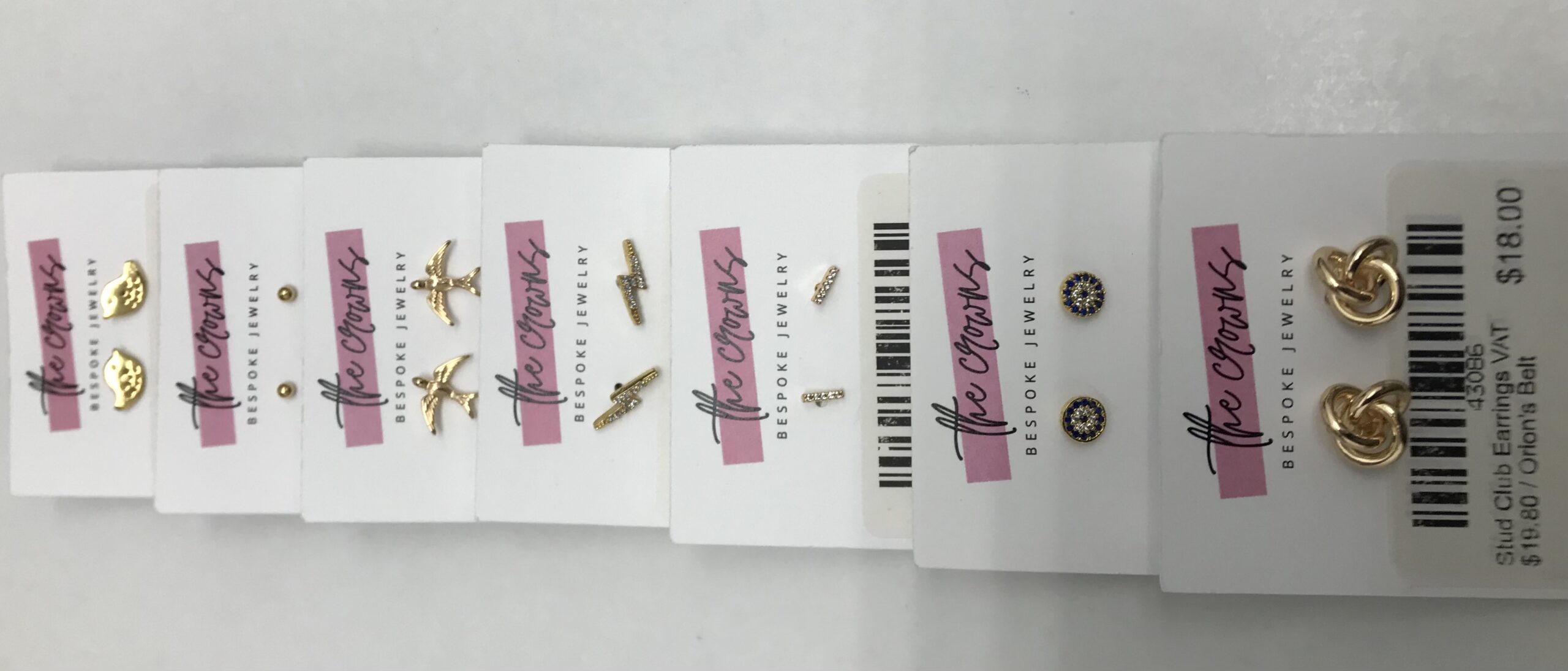 | Style | Blue Diamond Studs, Bows, Butterfly, Curved Stud, Diamon Sun, Diamond, Diamonds, Doves, Flower, Gold Heart, Gold Stud, Horseshoe, Lightening Bolt, Love bird, Orion's Belt, Three Dots |